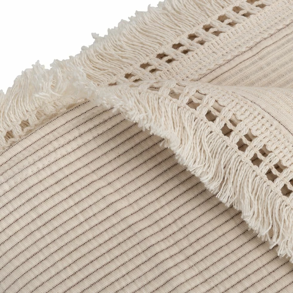 Apportez une touche de douceur dans votre chambre à coucher avec le couvre-lit Barlia. De 230×240 cm, ce grand couvre-lit en coton recouvre entièrement un lit 2 places tout en offrant un drapé élégant. Tissé de façon aérienne grâce au point ajouré, ce plaid est léger mais apporte toutefois un confort supplémentaire lorsque vous vous faites surprendre par la fraîcheur des soirées d’été. Ce linge décoratif passe facilement en machine. Fabriqué en Europe, plus particulièrement au Portugal, ce plaid en coton blanc se fera le compagnon de vos nuits.