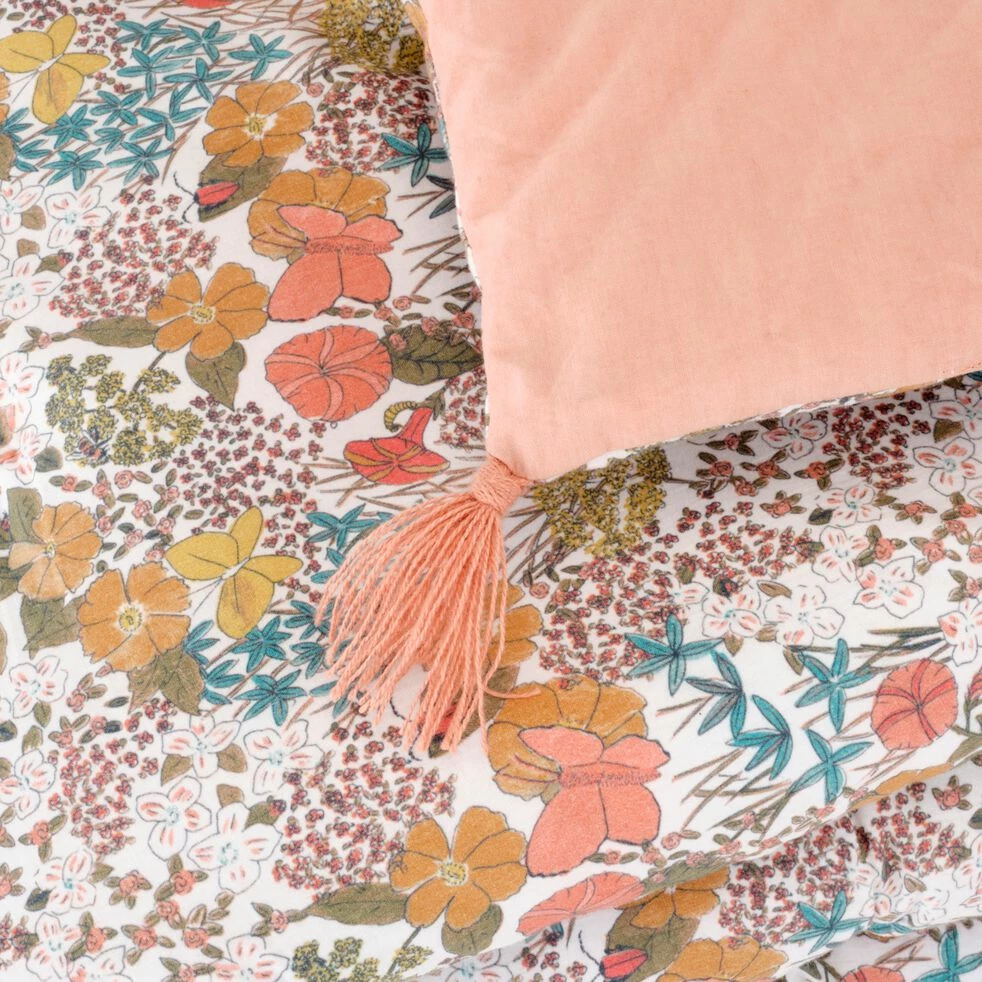 Apportez confort et douceur à votre lit avec l’édredon Butine. Cet édredon à motifs met en scène un jardin florissant dans lequel virevoltent quelques papillons. Ce couvre-lit plein de vie est idéal pour les beaux jours. Cet imprimé coloré respire la joie de vivre et fait de la chambre à coucher un cocon où l’on se sent vibrer. Pour une atmosphère plus épurée, retournez cet édredon en coton pour profiter de sa face unie, tout aussi jolie.