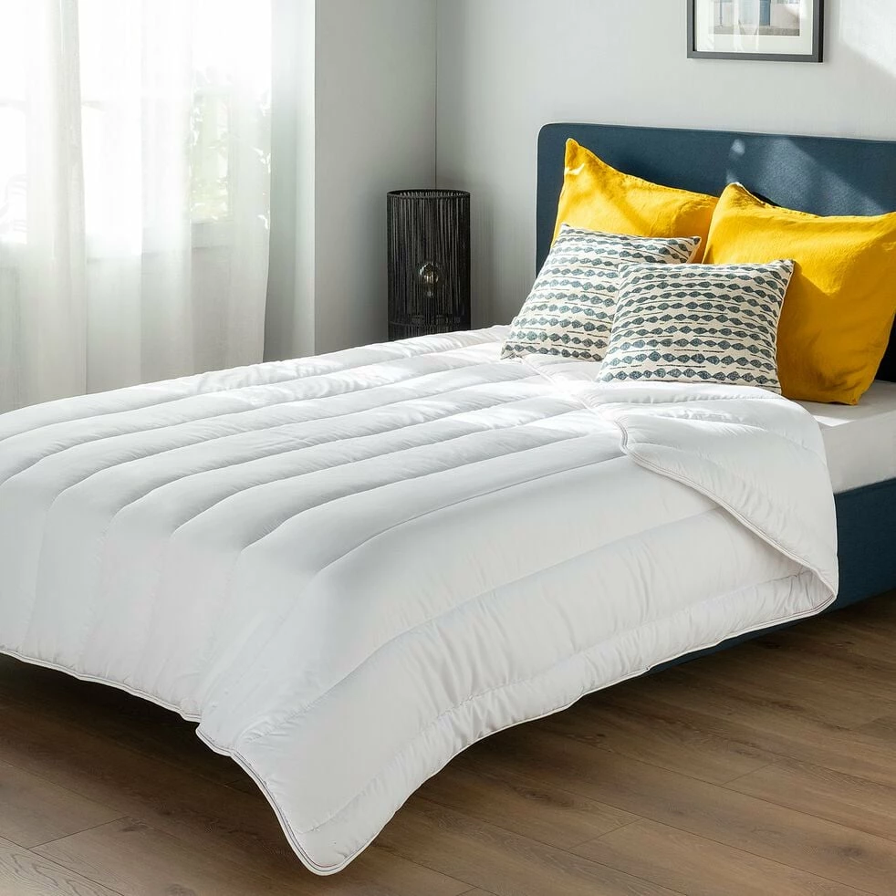 Cette petite couette de 140×200 cm convient pour un lit 1 place d’environ 90×190 cm. Synthétique, elle se compose de polyester, que ce soit dans son enveloppe ou bien son garnissage. Ainsi, cette couette est hypoallergénique : idéale pour les enfants ou les adultes sensibles aux acariens. C’est également une couette à bouillir : cet élément de literie se lave jusqu’à 95 °C pour une hygiène impeccable. Vos nuits sont saines et paisibles grâce à cette couette hautement hygiénique. Cette couette chaude convient pour un usage hivernale ou bien à la mi-saison pour les plus frileux.