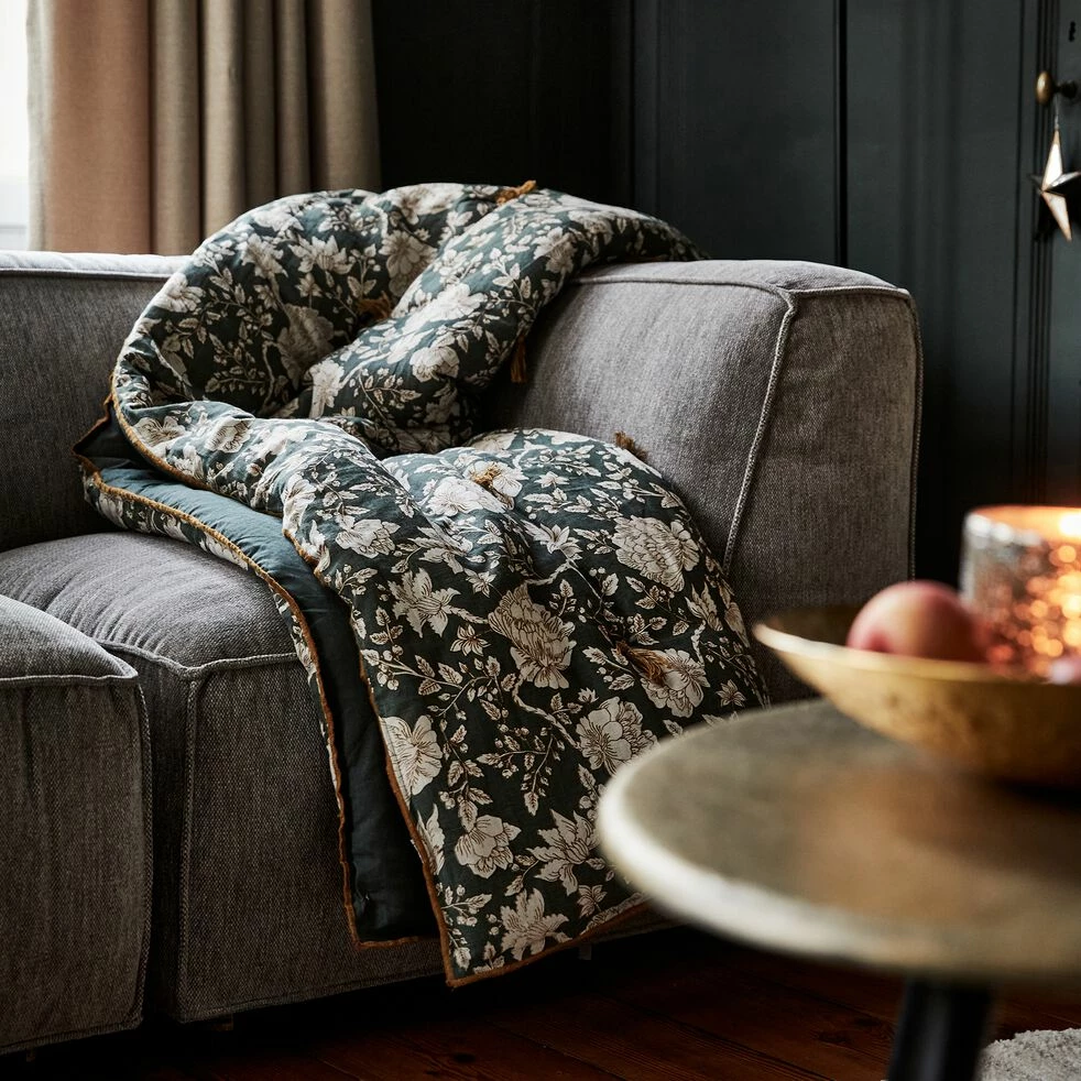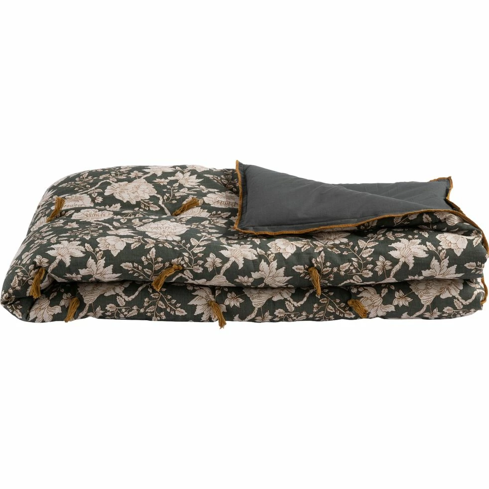 L’édredon Elina est un accessoire déco textile de prédiléction pour se créer un coin cosy. Tissé en coton et lin, cet édredon apportera à la fois une touche décorative ainsi qu’un peu de chaleur à votre lit durant les nuits d’hiver. Moelleux et confortable, cet édredon dispose d’un gonflant inimitable grâce à ses 5cm d’épaisseur. Il arbore deux faces. L’une unie et l’autre avec un joli motif shankar qui lui procurent un charme authentique. Il présente aussi quelques pompons pour une touche fantaisiste et bohème. Il existe en plusieurs modèles. Découvrez la gamme complète proposant plusieurs jetés de lit.