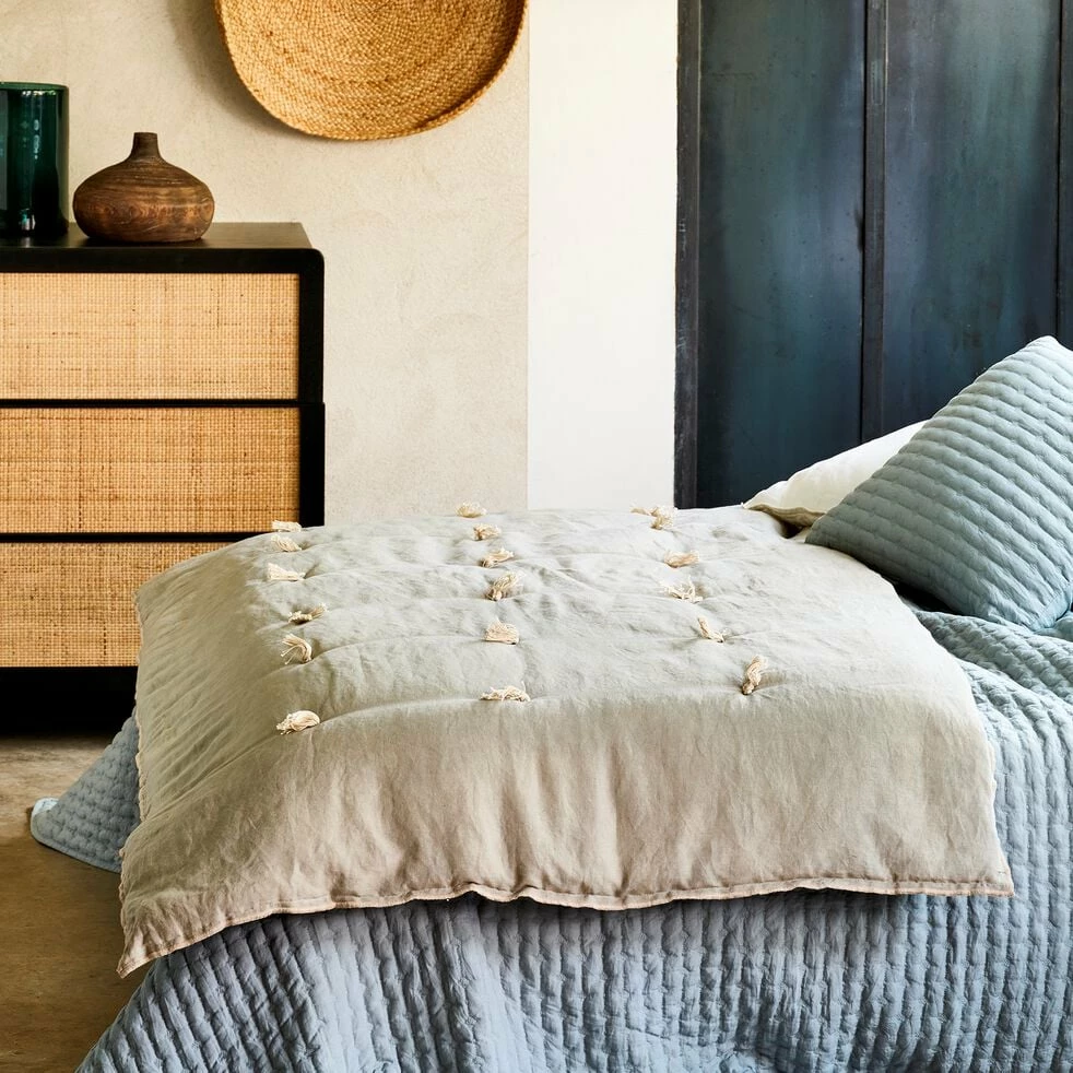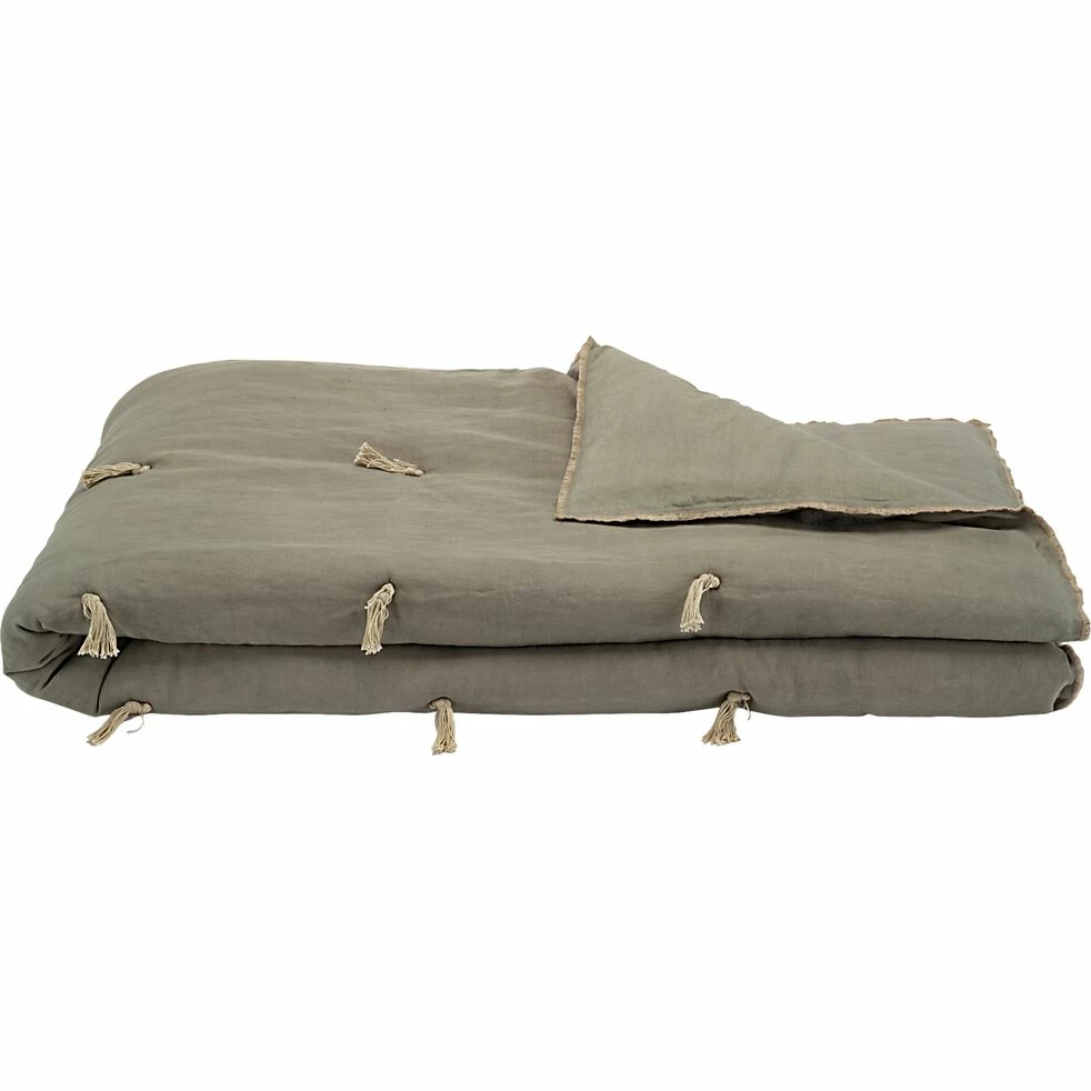 L’édredon Elina, d’un joli coloris vert olivier est un accessoire incontournable lorsque l’on souhaite se créer un coin cocooning. Tissé en coton et lin, cet édredon apportera à la fois une touche déco à votre lit ainsi qu’un peu de chaleur durant les nuits de grand froid. Doux et confortable, il présente un gonflant inimitable grâce à ses 5 cm d’épaisseur. Invitation à la détente, sa robe arbore des détails en passepoil noirs : une garniture en relief située sur les bordures pour souligner les traits de l’édredon. Ce fin liseré est accompagné de quelques pompons pour une touche fantaisiste et bohème. Ce linge de maison saura vous couvrir de tendresse.