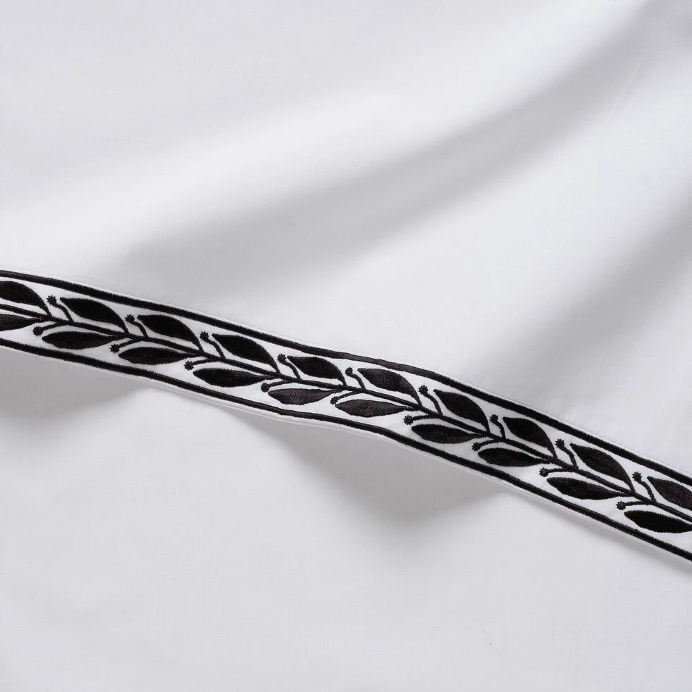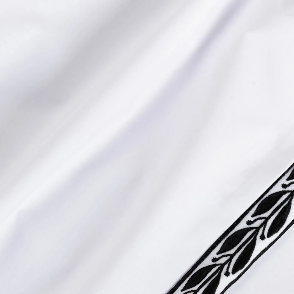 Kissos est la parure de lit parfaite pour les amateurs de décoration épurée. Cette parure de lit en percale de coton affiche une belle simplicité. Elle arbore un blanc éclatant, délicatement souligné par une frise noire. Cette dernière arbore un motif végétal discret mais qui fait toute la différence. Ce petit twist rend cette parure de lit épurée. Cette parure de lit blanche comprend une housse de couette de 260×240 cm ainsi que deux taies d’oreiller carrées de 63×63 cm. Plus qu’un simple linge de lit décoratif, Kissos est un compagnon de tous les jours pour des nuits douces et reposantes.