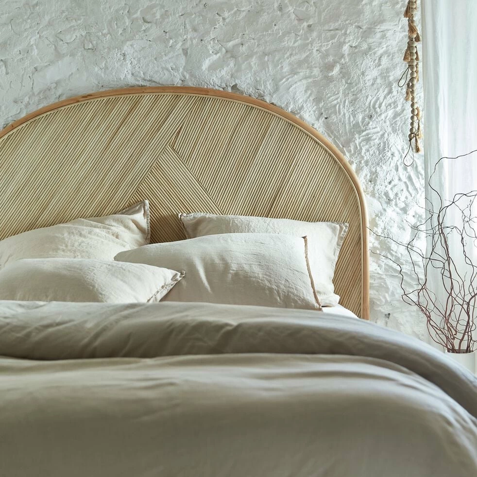 Avec ses fines bandes de rotins qui forment un motif, cette tête de lit ronde de 135 x 170 cm apporte de la géométrie et de l’équilibre à votre pièce. Pour une chambre bien décorée, cette tête de lit est idéale. La tête de lit Marietta, avec sa matière robuste, s’associe parfaitement à tous les types de décorations. Donnez du charme à votre pièce en accordant votre tête de lit avec des meubles ou de la décorations aux matières naturelles comme des suspensions en bambou, des tapis en rotin, des paniers en osier ou encore du linge de lit en lin pour une chambre à la fois moderne et cocooning.