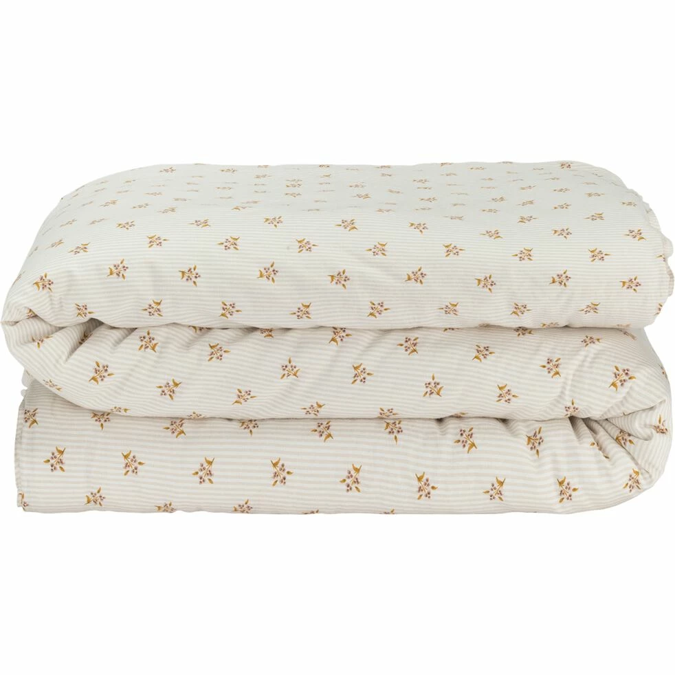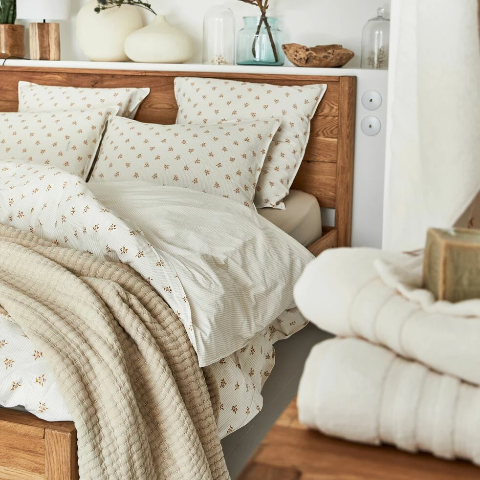 Glissez vous sous la housse de couette Mouchoir pour passer des nuits douces et sereines. Cette housse de couette réversible s’adapte à toutes vos envies déco et à toutes les saisons. Elle présente un recto en lin et coton, orné d’un motif floral et de fines rayures. Frais et printanier, ce côté convient parfaitement aux beaux jours. Le verso est entièrement confectionné en coton lavé, un tissage plus douillet, parfait lorsque les nuits se rafraichissent. Plus minimaliste, ce côté est réservé aux rayures jaunes, motif chaleureux. Cette housse de couette de 240×220 cm est vendue dans un tote bag assorti, joli sac en toile qui vous accompagne lors de vos sorties.