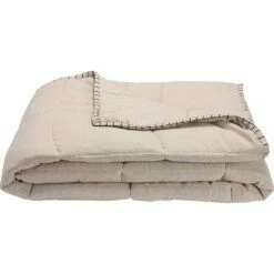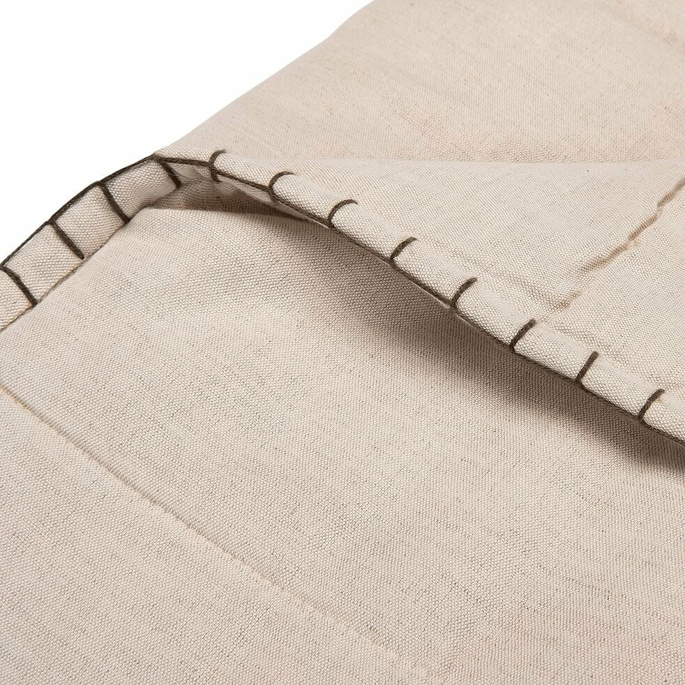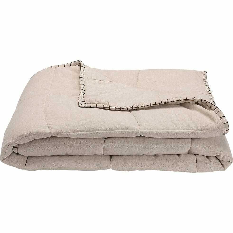 Le couvre-lit Scacchi se distingue par sa housse aux fibres naturelles. Sur une face, le coton et le lin s’entremêlent pour donner un tissu élégant, aux ondulations légères. Sur l’autre face, de la popeline de coton. Cette toile d’épaisseur moyenne se caractérise par un tissage très serré offrant un aspect subtilement brillant, satiné. Un garnissage en polyester offre un côté gonflant et chaud pour les nuits d’hiver. Matelassé à l’aide d’un fil ton sur ton, ce couvre-lit à la teinte naturelle suggère un échiquier, d’où son nom « Scacchi » ou « échecs » en provençal. Ce couvre-lit de 130x170cm finit de nous charmer à travers sa finition brune en point de cheval qui souligne les bords de la pièce. Un beau linge qui habillera avec raffinement mais simplicité un coin de votre .